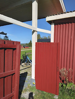 Riktigt fin, solig torsdag. Hunden fick sig en motions-sväng till Ålidhems Lidl. Bananer var inte alls så billiga, som det hade annonserats.. Varvades ner med en promenad, tillsammans med ena grannen och gårds-sittning med ytterligare grannar. Nästan så att tvätt-tiden bommades!